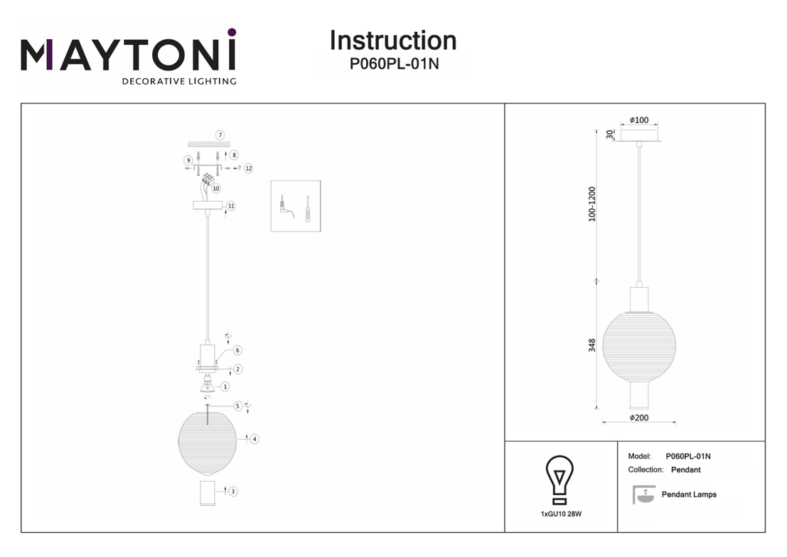 Купить "Подвесной светильник Maytoni Rueca P060PL-01N"