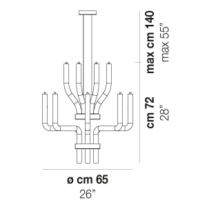 Подвесной светильник из коллекции STARDUST с 16 рожками из выдувного стекла. Металлическая арматура цвета черный никель с оригинальной системой крепления дужек. Высота подвесов регулируется до 200см.