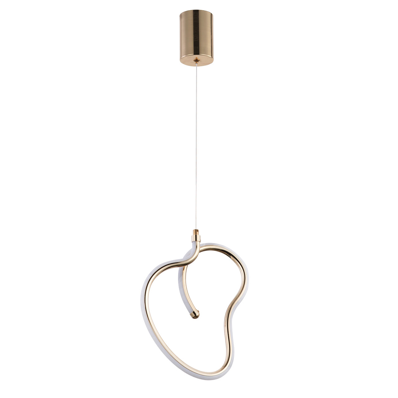 Металлическое основание подвеса гальванизировано в цвет французского золота. Корпус плафона выполнен из акрила и гальванизирован в цвет основания. Светодиодные источники света закрыты белым матовым силиконом.