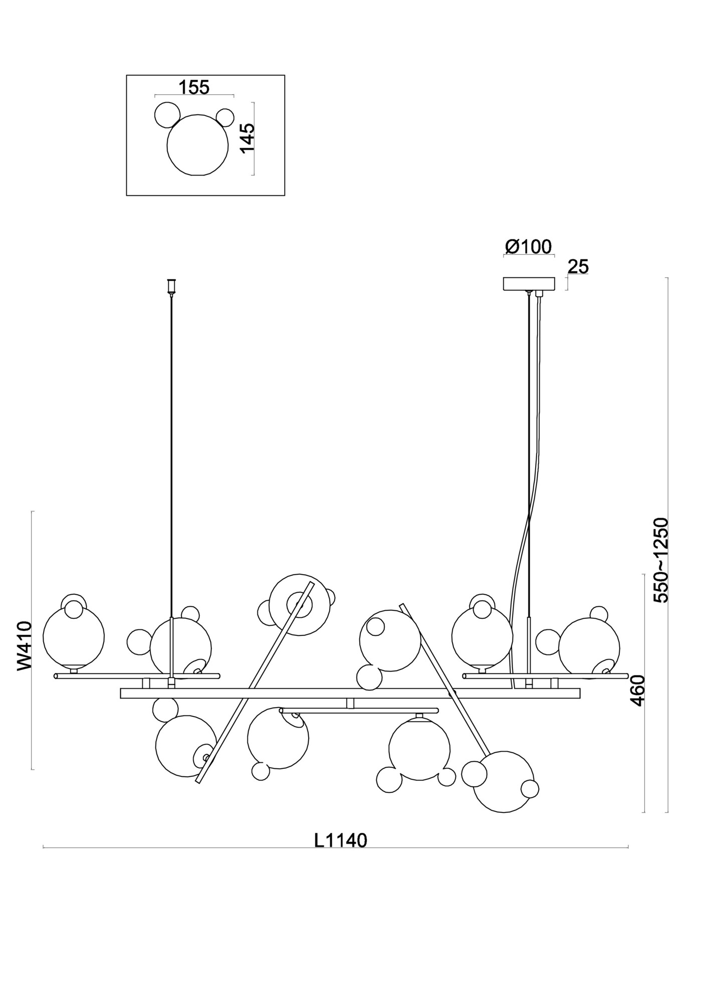 - Высота плафона (абажура): 145