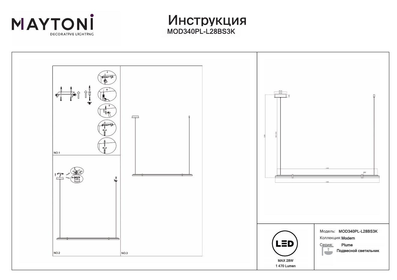 Данную модель MOD340PL-L28BS3K спешите купить с быстрой доставкой в магазине 220svet.ru