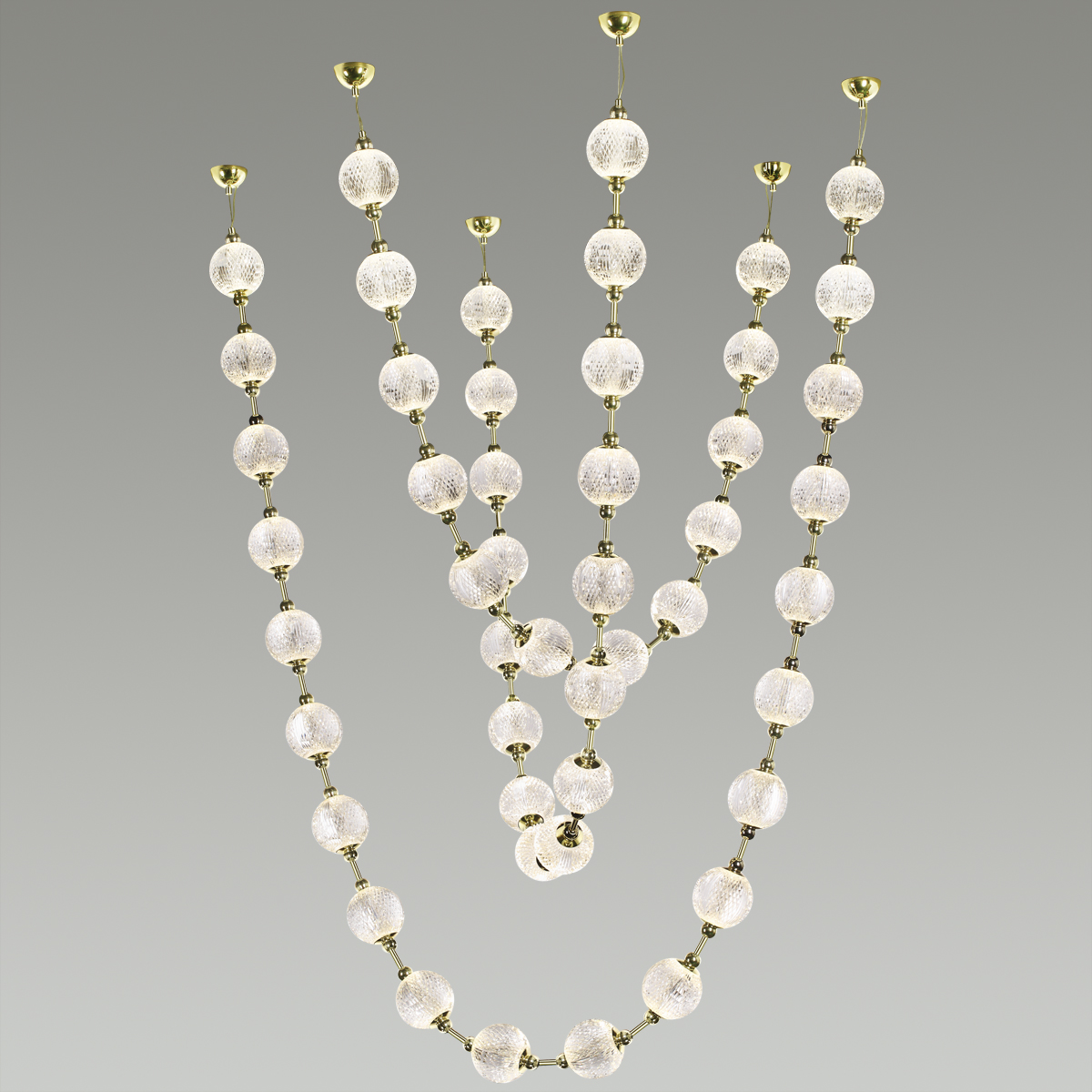Великолепная светодиодная линия Crystal поражает изяществом, лаконичностью и многообразием модельного ряда. Люстра в виде множества свисающих бус, которые создают красивый ансамбль, предназначенная для помещений с высокими потолками, лестничных пролетов в коттеджах и залов со вторым светом, прекрасно украсит интерьер в различных стилях — от неоклассики до хайтека. Множество акриловых шариков, имитирующих хрустальную резную фактуру, создадут непередаваемую игру света и переливов. Модель предназначена для установки в подвесной потолок или потолок из гипсокартона. Драйвер устанавливается «за потолком» на расстоянии не более 1,5м от люстры.