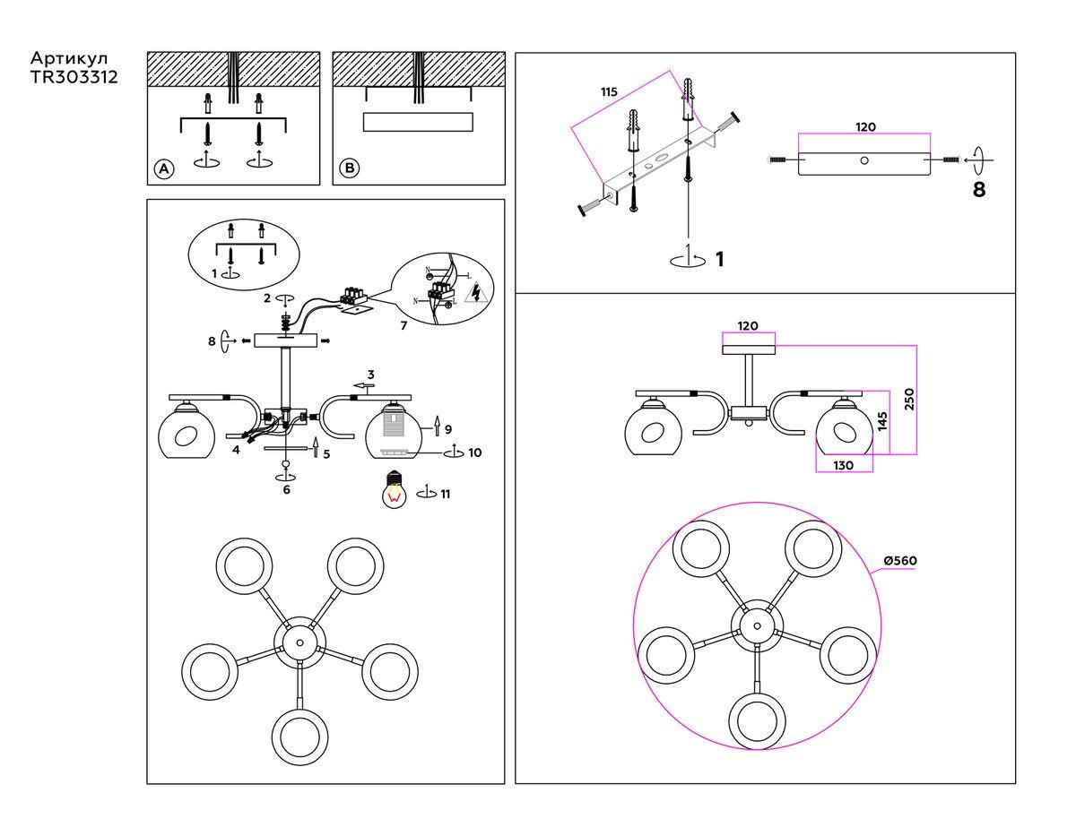 - Направление плафонов: Плафон вниз