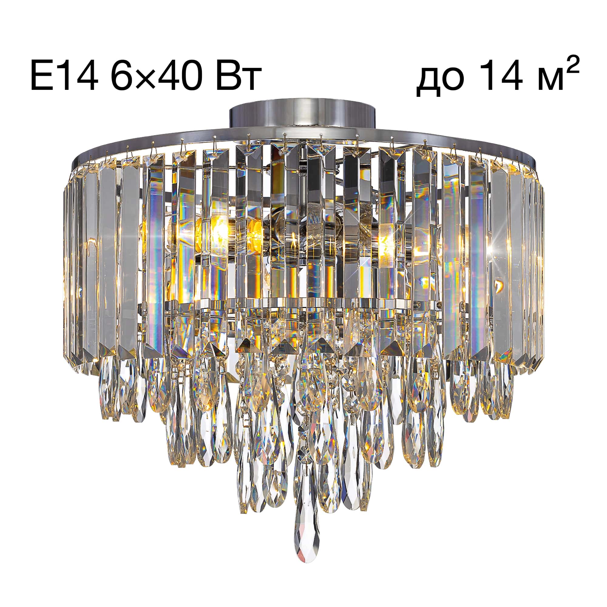 - 6 ламп с цоколем E14 (до 40Вт, лампы приобретаются отдельно)