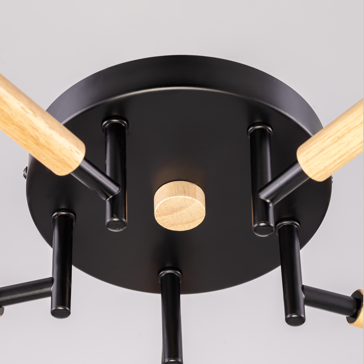 Потолочная люстра Citilux CL133151 Tika станет идеальным решением для вашего интерьера! Модный стиль лофт, металлический чёрный матовый корпус, натуральное дерево и плафоны из прозрачного стекла светло-янтарного оттенка превратят вашу комнату в уютный уголок. Поворотные шарниры позволяют направить плафоны в любую сторону, а тип крепления рожков собрать компактную или раскидистую модель.