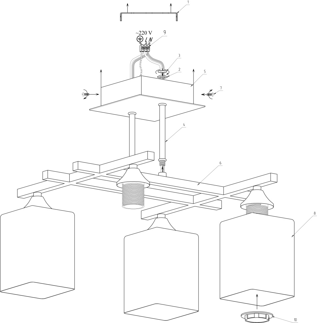 - Направление плафонов: Плафон вниз