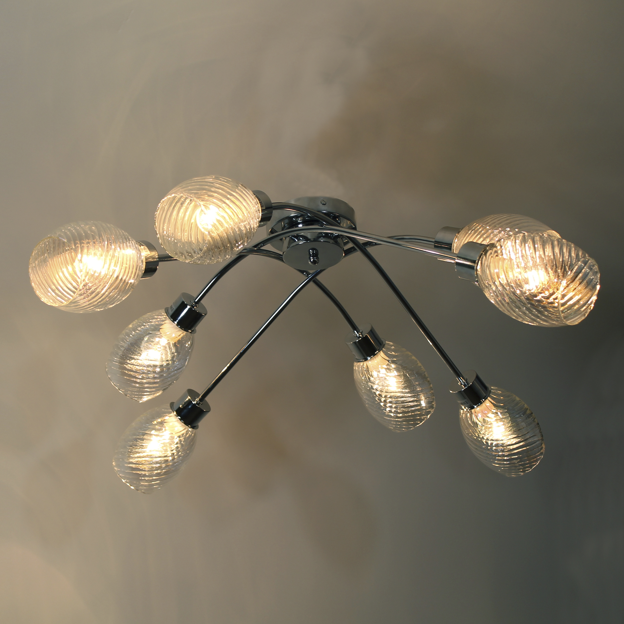 Люстра отлично подойдет для установки на потолок комнаты, оформленной в современном стиле. Потолочная люстра осветит помещение площадью 25 м2. Источник света - лампы накаливания мощностью до 60 Вт, светодиодные лампы, энергосберегающие лампы. Модель произведена с использованием материалов: стекло и металл. Светильник дает максимум света, плафоны изготовлены из стекла. Плафоны легко моются и сохраняют свой безупречный внешний вид на протяжении всего срока эксплуатации. Данную модель 1005404853 можно купить в интернет магазине 220svet.ru