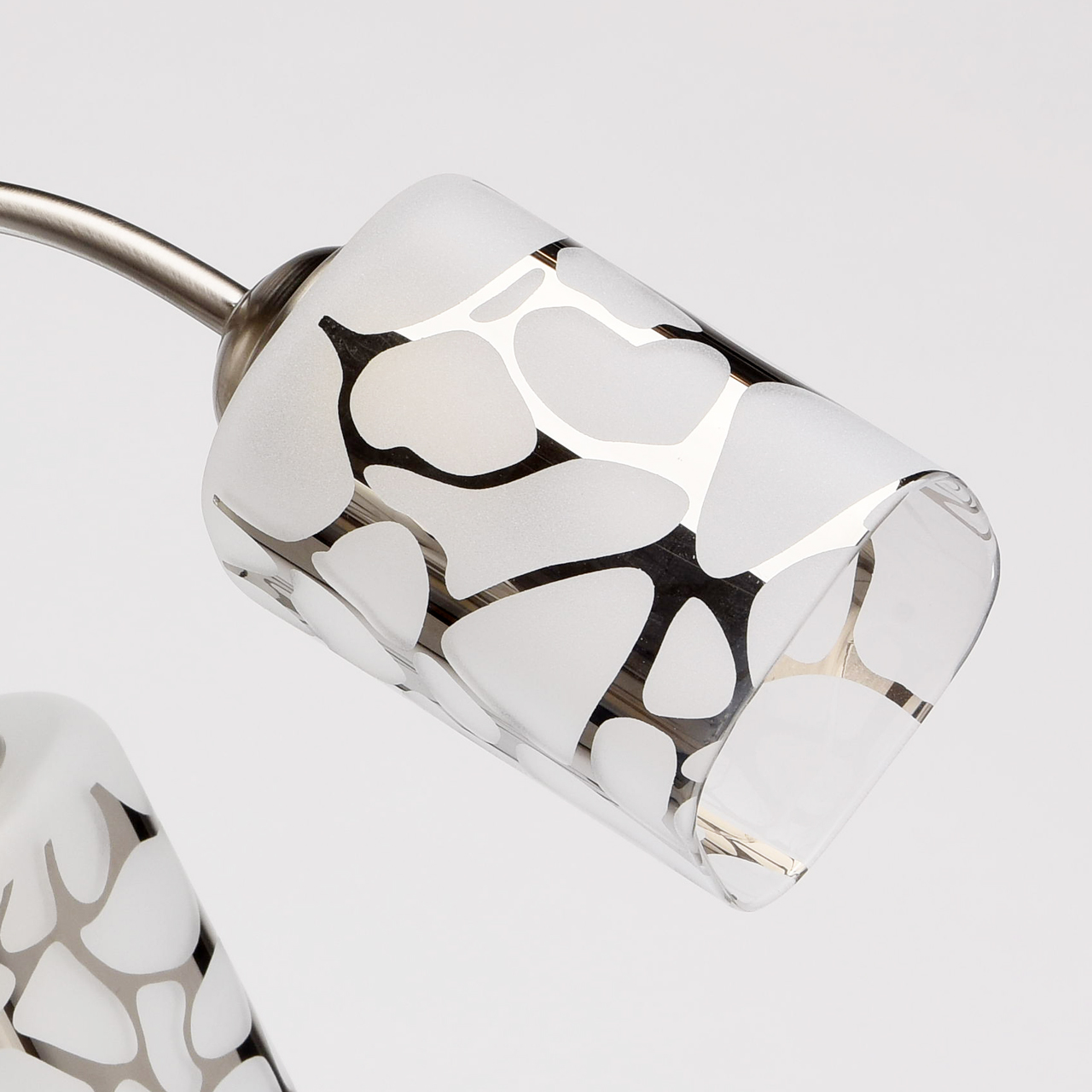 Отличная цена! Интересный, современный дизайн - светильники удачно впишутся в современные экономичные интерьеры. Высокие параметры освещенности. Трендовый оттенок основания – цвет хрома. Оригинальный узор в декоре плафонов.
