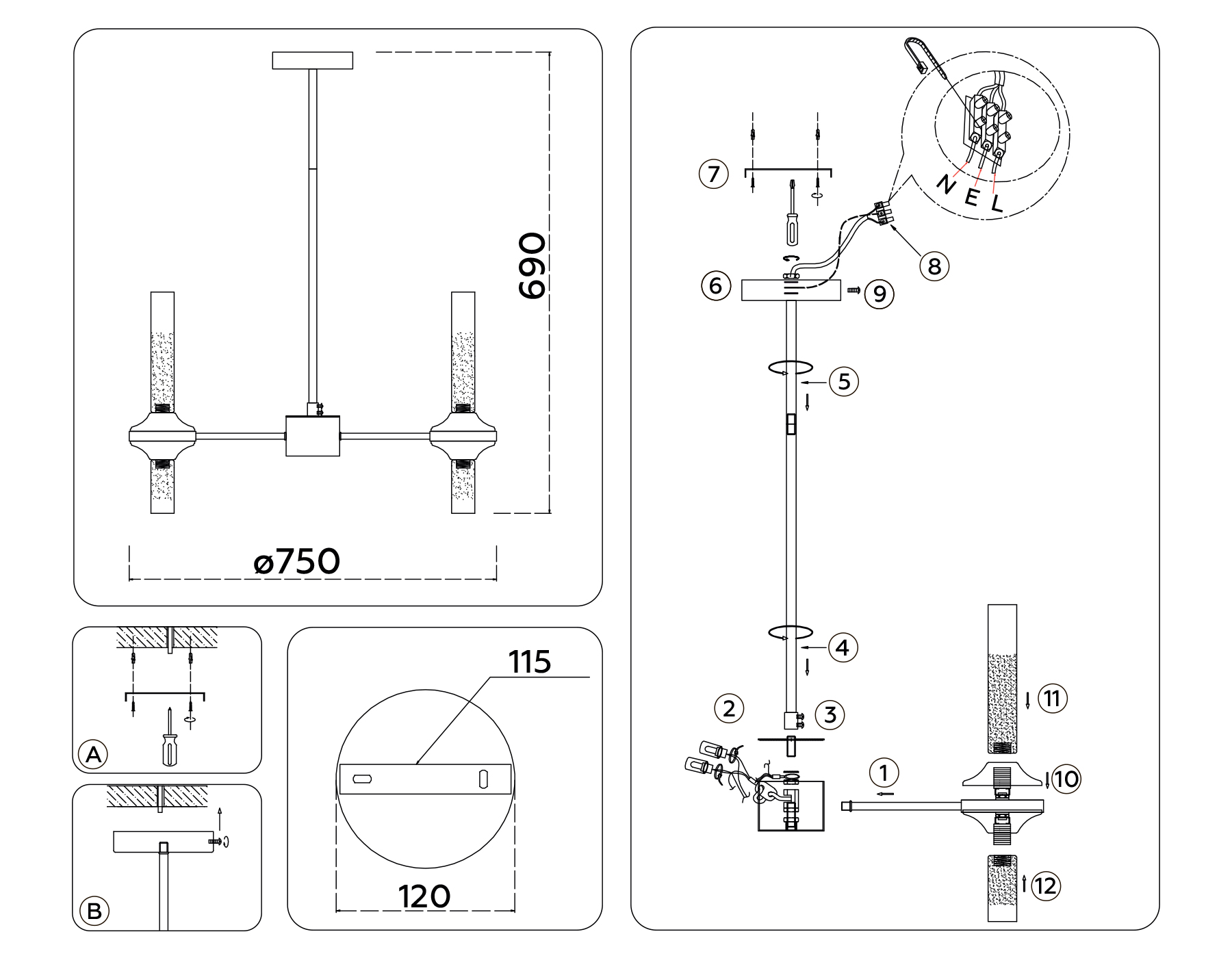 - Цвет плафонов: Прозрачный