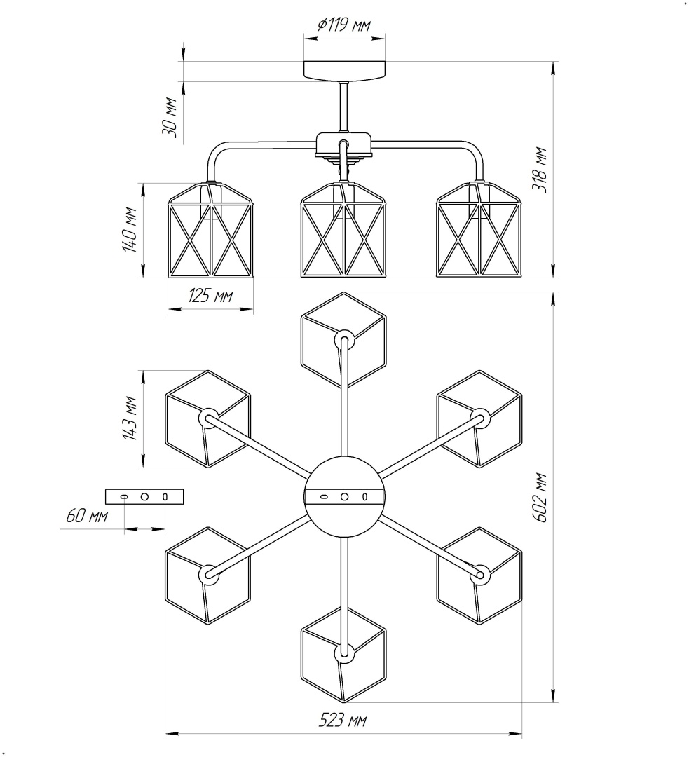 - Направление плафонов: Плафон вниз