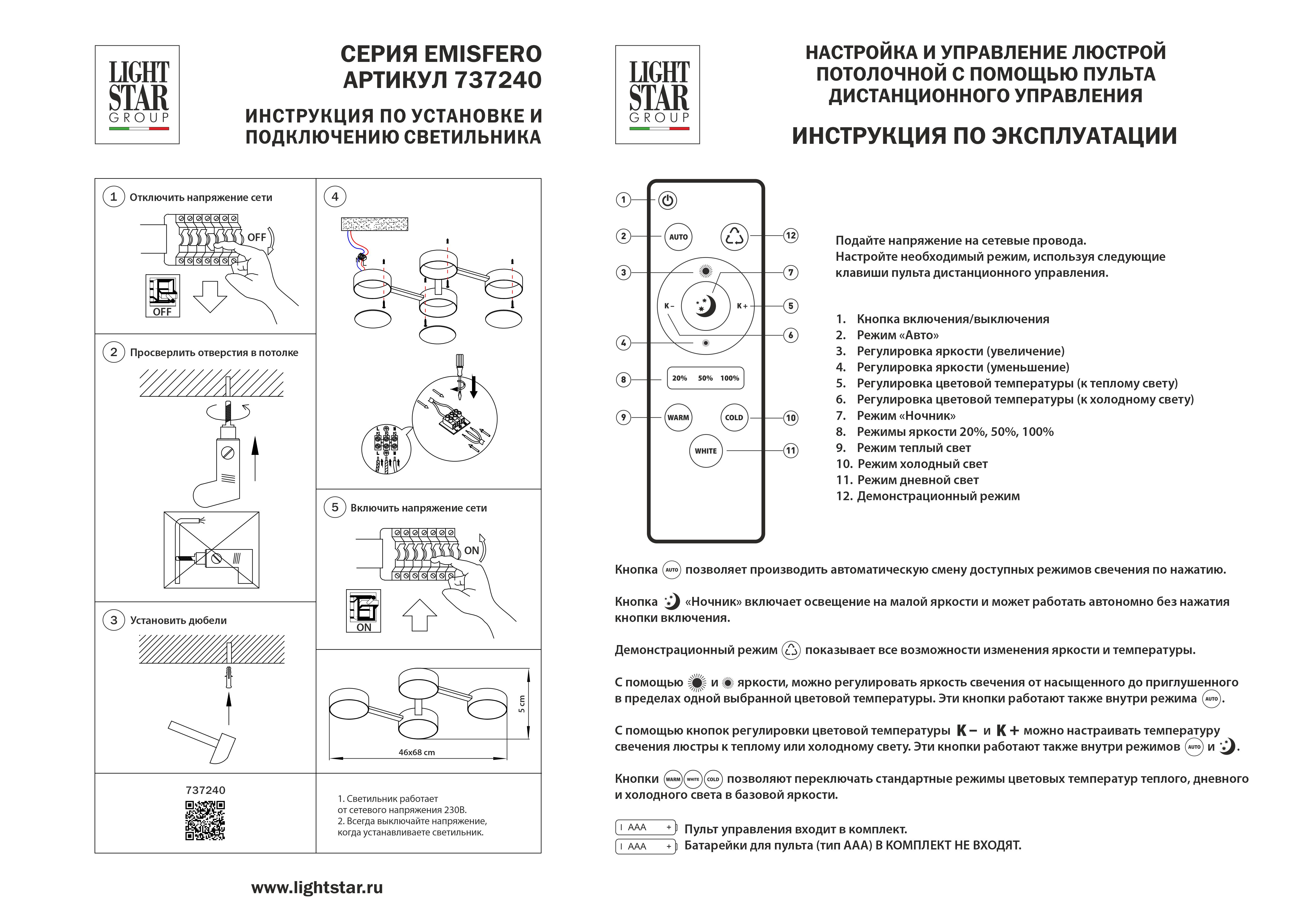 - Режим работы: Регулировка яркости свечения, Регулировка цветовой температуры