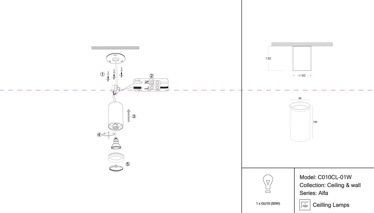 - Место установки: на потолок