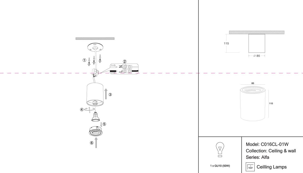 - Место установки: на потолок