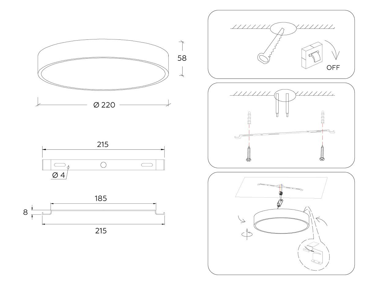 - Место установки: на потолок