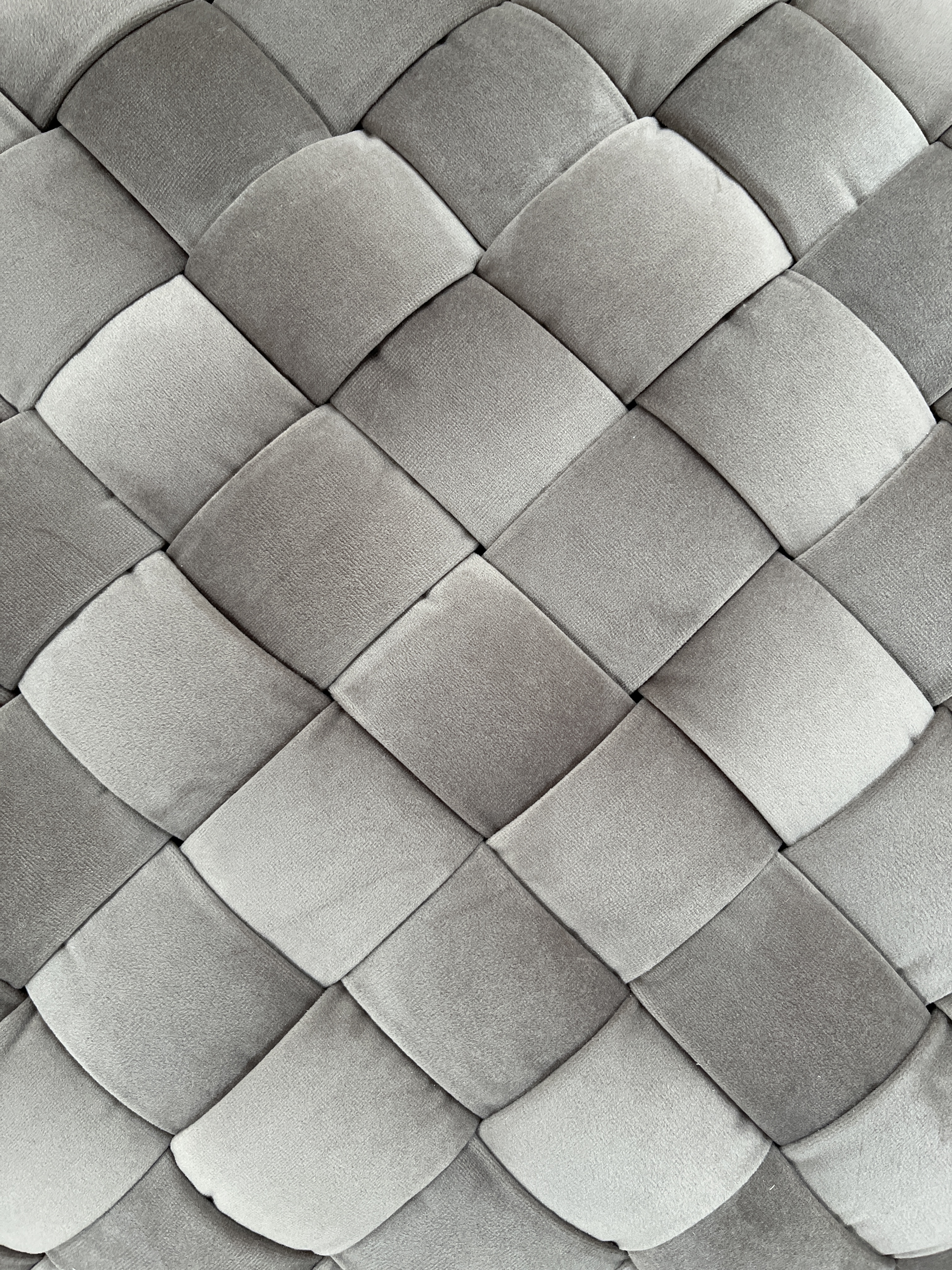 Необычный низкий пуф с интересной отделкой сиденья из плетеных лент ткани с наполнителем ППУ внутри. Нейтральный светло-бежевый цвет велюра и удобство дают возможность вписать такой предмет мебели в разнообразные варианты интерьера как предмет для сидения в духе восточных традиций, либо как подставку для ног рядом с креслом или диваном.
