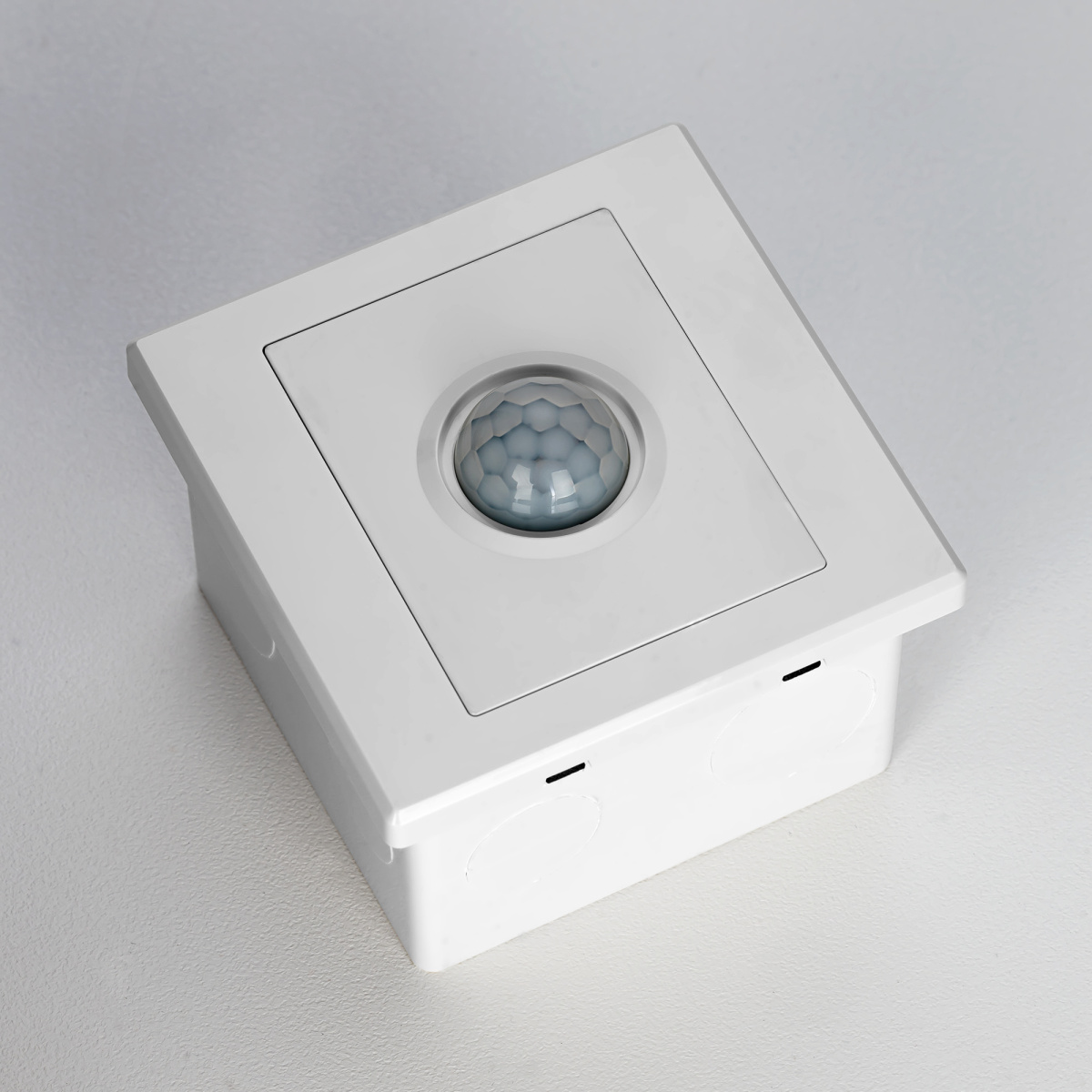 Корпус изделия изготовлен из прочного полимера белого цвета, поставляется в комплекте с монтажной коробкой.