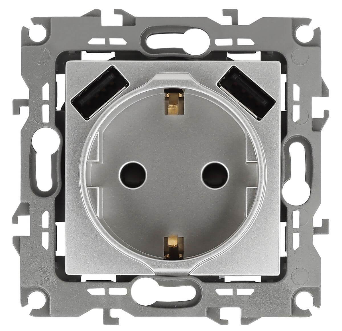 Купить "Розетка Эра 2P E со шторками 16A 250V 2xUSB 14-4109-03 Б0047869"