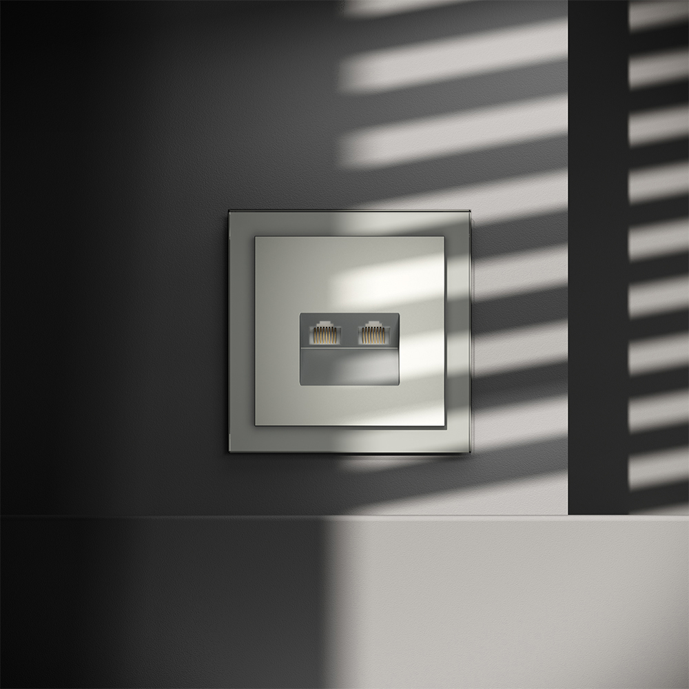 Купить "Розетка компьютерная встраиваемая двойная RJ45+RJ45 кат.6 Voltum S70 VLS060205 (сталь)"