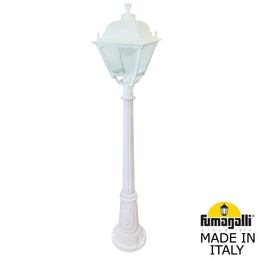 Садово-парковый фонарь FUMAGALLI среднего размера серии SIMON, модель ARTU/SIMON. Парковый фонарь с 1 венчающим светильником большого размера в на классическом столбе ARTU высотой 1,5 м (+высота фонаря). Предназначен для освещения парковых дорожек, cкверов, садовых и ландшафтных композиций, и других общественных пространств. Используется в качестве основного уличного освещения на городских улицах и площадях. Изготовлены в Италии, по уникальным технологиям "FUMATECH" из современного композитного полимера RESIN. Этот материал в 5 раз прочнее металла, не ржавеет, не окисляется, не выгорает на солнце, его не нужно красить. Все светильники пыле-влаго защищены по стандарту IP55 (Пылезащищенные, защита от водяных струй с любого направления). Рассеиватель выполнен из антивандального, не мутнеющего и не горючего PMMA (ПолиМетилМетаАкрилат). Срок службы светильника - не менее 20 лет. Температура использования от -60 до +90. В серии SIMON есть садовые фонари в настенном (OFIR/SIMON, MIRRA/SIMON) подвесном (SICHEM/SIMON) и наземном исполнении (IAFAET.R/SIMON, ALOE.R/SIMON, ARTU/SIMON, GIGI/SIMON, RICU/SIMON, NEBO/OFIR/SIMON 1L, NEBO/OFIR/SIMON 2L, TABOR/ADAM/SIMON 3L) со столбами разной высоты, с разным количеством и конфигурацией голов. Консоли настенных фонарей и кронштейны светильников на столбах освещения могут устанавливаться в положение вверх и вниз. Столбы выше 150 см имеют в основе мощную стальную трубу с двойной оцинковкой. При заказе требуется выбрать цвет корпуса, цвет плафона и тип патрона (Е-27 или LED GX-53). Возможен светодиодный вариант. По стилю и дизайну серия уличных светильников SIMON похожа на светильники среднего размера серии CEFA. По размеру относится к большим парковым светильникам как серия NOEMI и GLOBE 400.