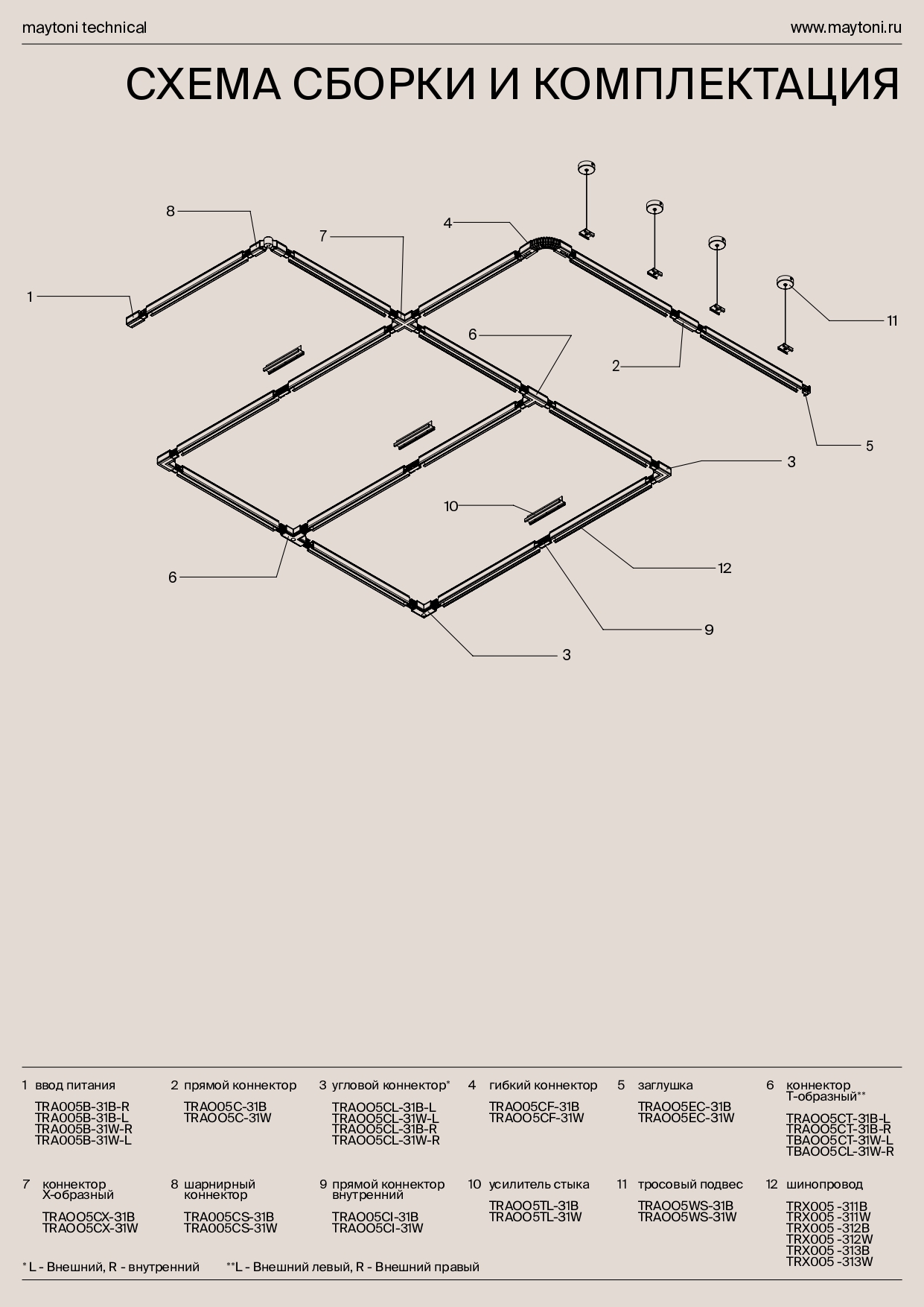 Для подвесного монтажа необходимо дополнительно приобрести кронштейн-подвес Maytoni Trinity TRA005WS-31B (длина троса 2м)