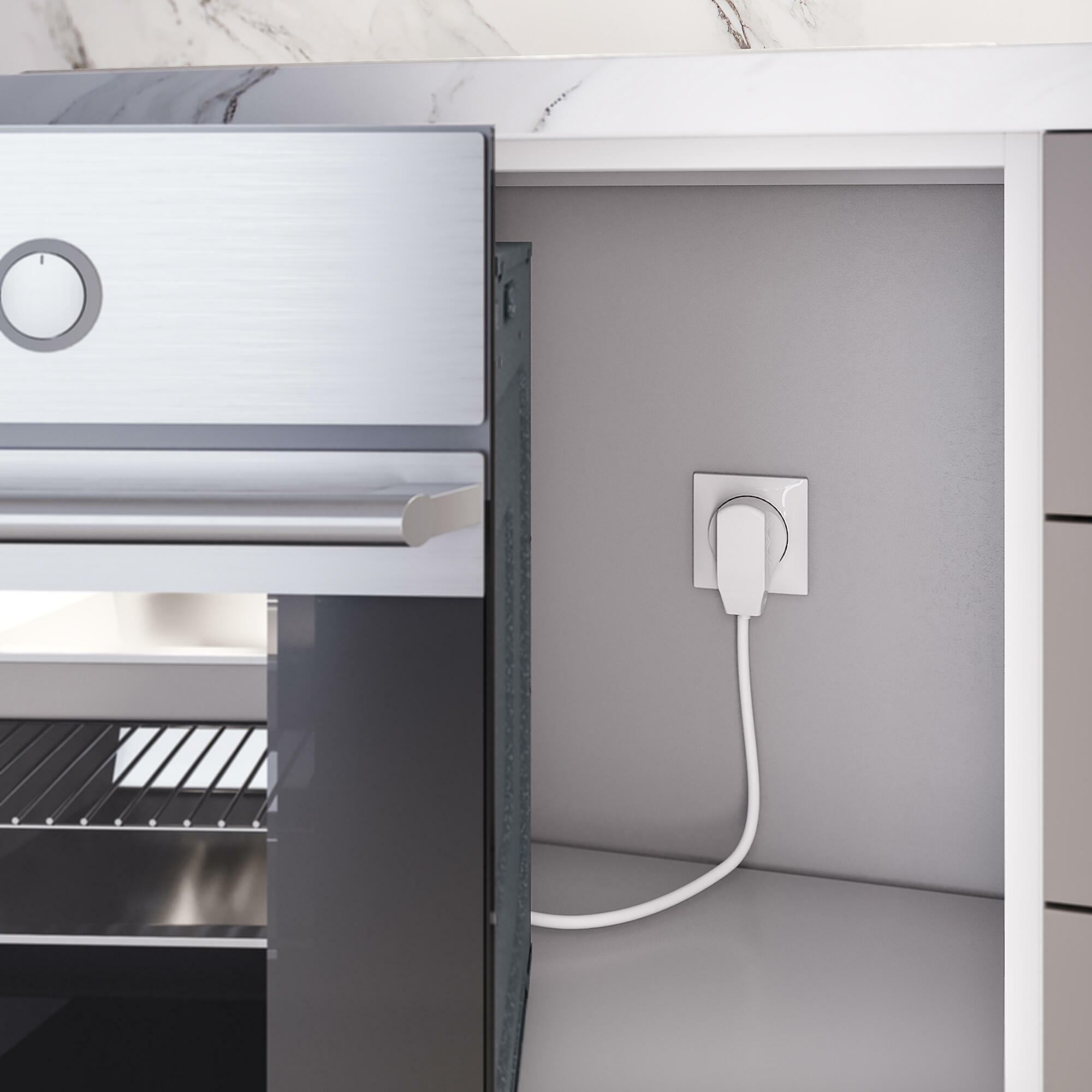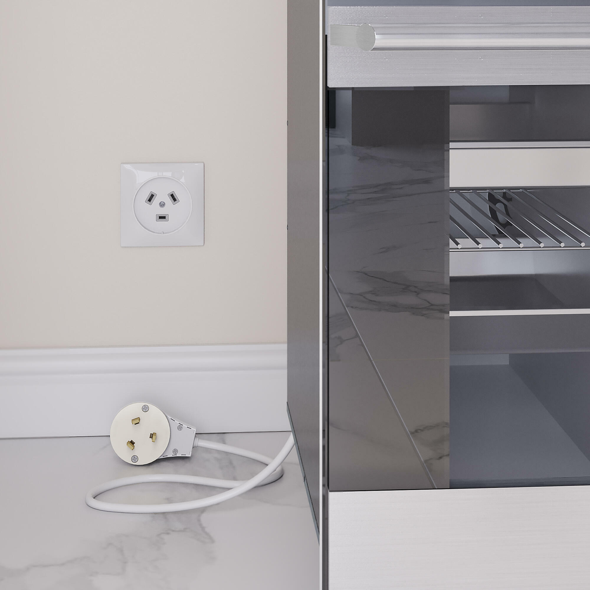 Внешняя лицевая панель выполнена из высококачественного поликарбоната, устойчивого к высоким температурам. Комплект: розетка с вилкой для электроплиты 32А 250В, коробка в стену.