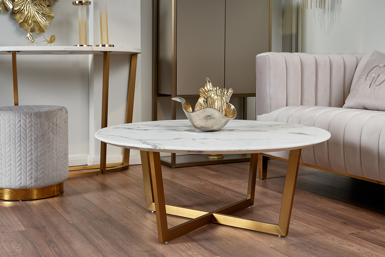 Выбираете мебель для гостиной? Тогда вам не обойтись без удобного и стильного журнального стола круглой формы. Почему именно такие изделия оптимальны в использовании? Классическое круглое исполнение придаст завершенность и гармоничность помещению. Использовать вещь можно в декоративных или практических целях. Покрытие МДФ столешницы под мрамор придает ему благородный вид и эстетическую привлекательность. Приобрести журнальный стол в Москве можно в нашем интернет-магазине, а также выбрать подходящую модель журнальных столов с фото, ценами в каталоге. Толщина столешницы - 25мм. У нас вы можете приобрести обеденный стол арт. 33FS-DT3022-BBS и журнальный столик арт. 33FS-ET2029-BBS из этой же серии.