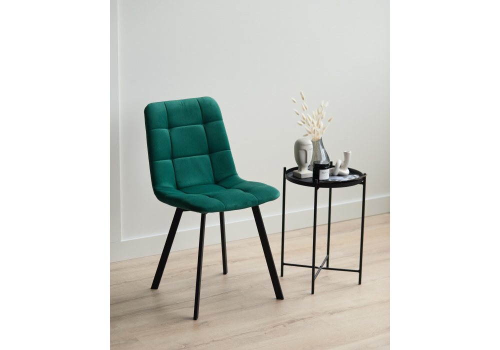 Материал каркаса - металл; Материал сиденья - велюр; Материал обивки - велюр; Цвет ножек - черный; Ширина - 43,5; Глубина - 50; Высота - 87,5; Ширина сиденья - 40; Глубина сиденья - 37,5; Высота сиденья - 49;