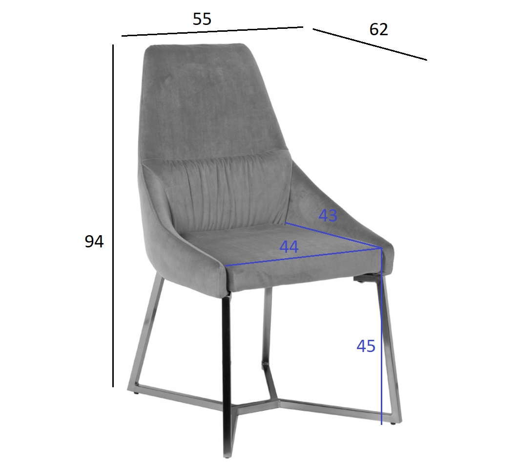 Оригинальный стул, выполненный в современном европейском стиле, сочетает в себе красоту и удобство. Обивка из высококачественного серого велюра и специально сконструированное сиденье, поддерживающее спину, обеспечивают комфорт, а прочная стальная опора цвета матового золота, заменяющая традиционные ножки, гарантирует устойчивость. Наполнитель пенополиуретан. Размер сиденья: Г43*Ш44*В45см.