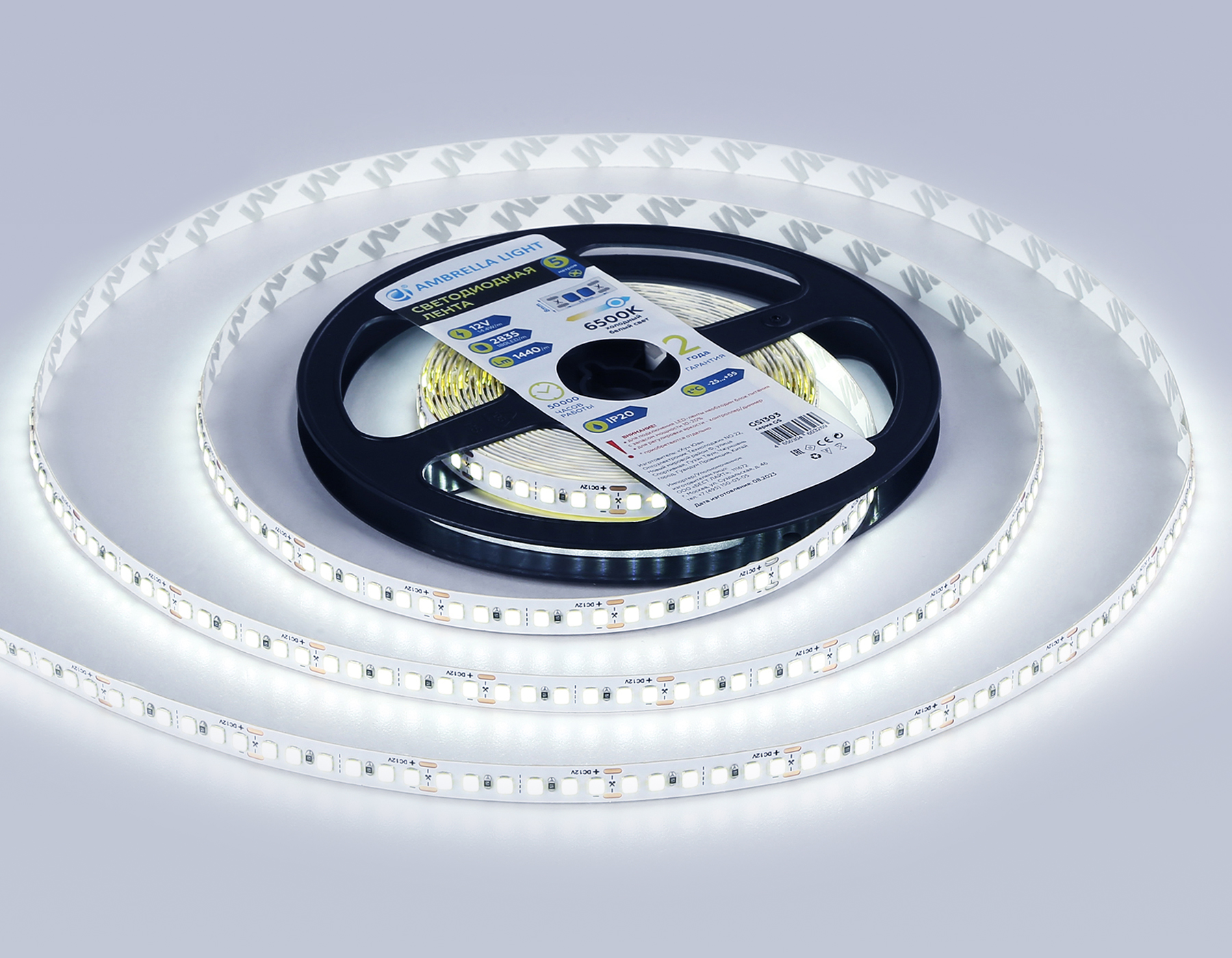 Светодиодная лента 14. 4W m/12V 6500K 5m Ambrella light LED Strip 12V GS1313 в г. Артеме