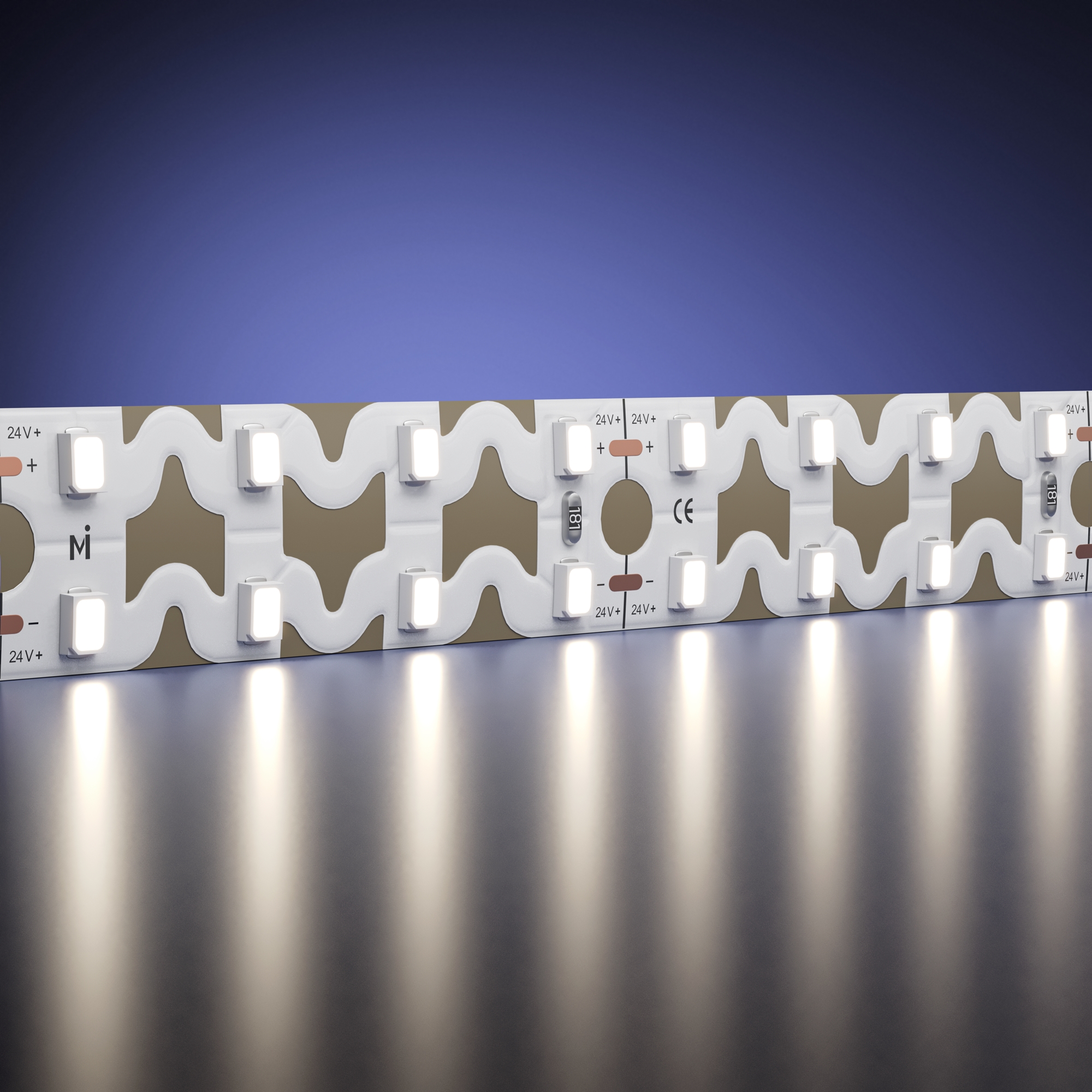 Лента с изгибом в плоскости мощностью 9.6 Вт/м (48 Вт на 5 м). Цветовая температура - 3000К и 4000К в зависимости от выбранной модели. Плотность светодиодов — 120 шт/м (600 шт на 5 м). Размер — 6х5000 мм, кратность реза — 50 мм. Индекс цветопередачи >90Ra. Угол рассеивания 120°. Рабочее напряжение 24 В. Для создания световых линий с возможностью включения белого цвета в декоративной подсветке потолочных ниш. Идеальное решение для подсветки сложных рекламных конструкций нестандартной формы.