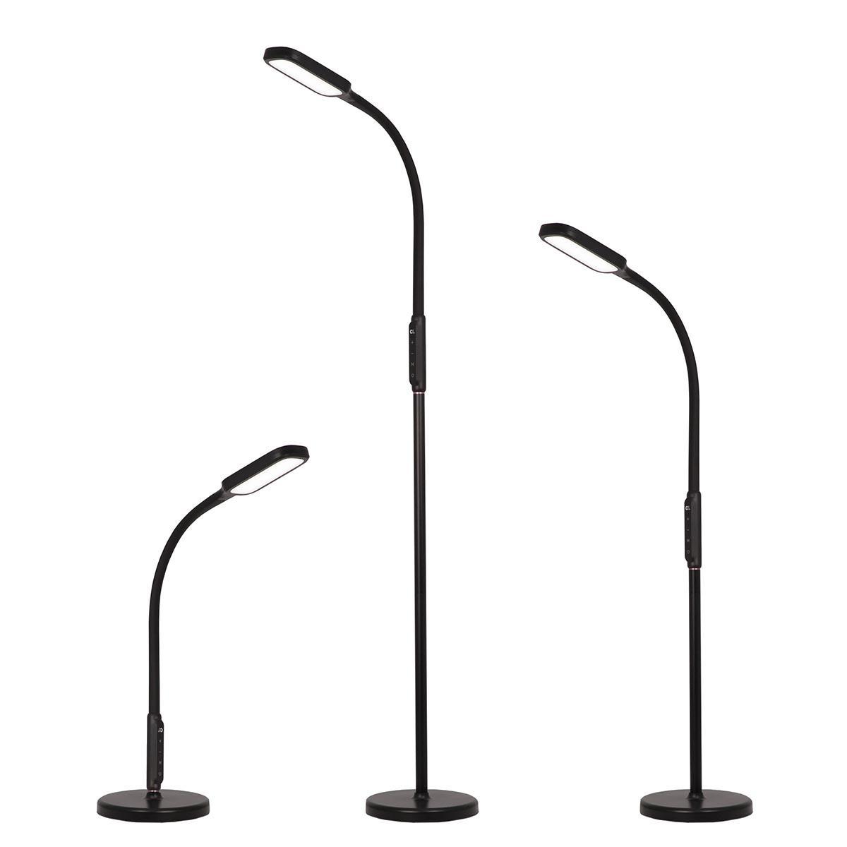 Светодиодный напольный торшер Citilux Марк CL804021 выполнен в современном стиле, цвет чёрный. Круглое основание светильника изготовлено из ударопрочного полимера. Стойка металлическая, состоит из трёх частей, которые соединяются между собой с помощью резьбового соединения. Две нижние части по 40 см. Верхняя часть с блоком управления, гибкой «шеей» и светодиодным модулем-плафоном. В текущей версии изготовления, торшер можно собрать в двух вариантах, «стандартный торшер» и «маленький торшер». Мощность 13Вт. Управление сенсорное, доступно: ступенчатая регулировка яркости (5 режимов), цветовой температуры – 2800 - 4000 – 5500 Кельвин (тёплый, нейтральный, холодный свет). Есть таймер выключения, с задержкой 60 минут. Торшер Citilux Марк CL804021 прекрасный вариант для освещения рабочего стола офисных работников, студентов и школьников. Подойдёт для освещения зоны отдыха, возле дивана или кресла.