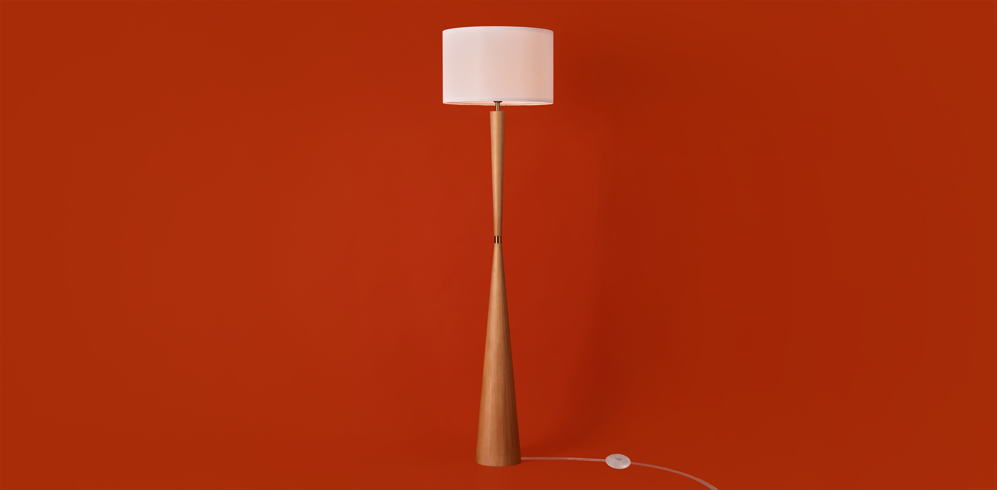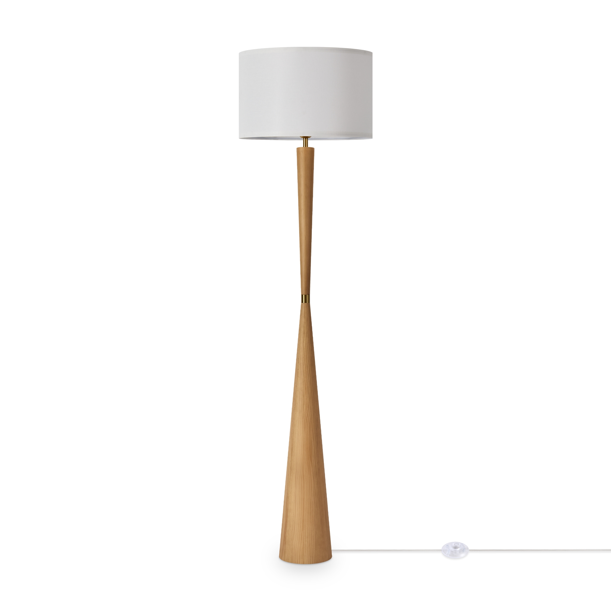 Арматура — металл. Деревянное разборное основание. Тканевый абажур белого цвета. Источник света — лампа E27 (не в комплекте).
