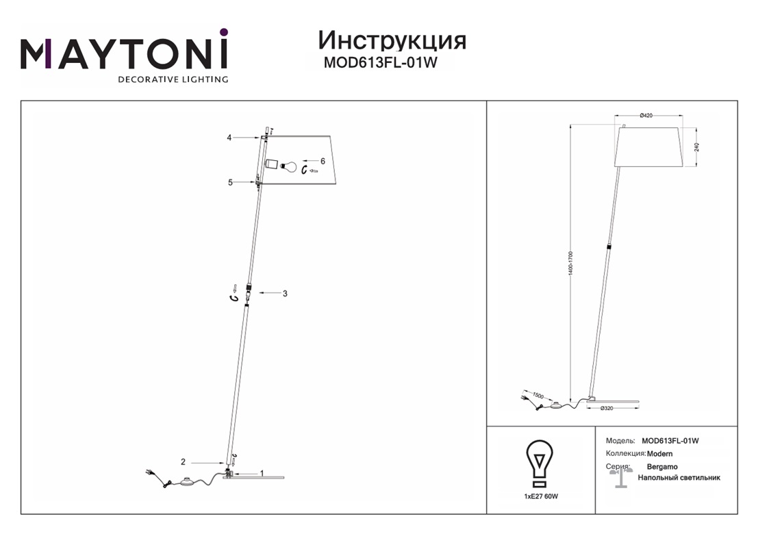 Купить "Торшер Maytoni Bergamo MOD613FL-01W"