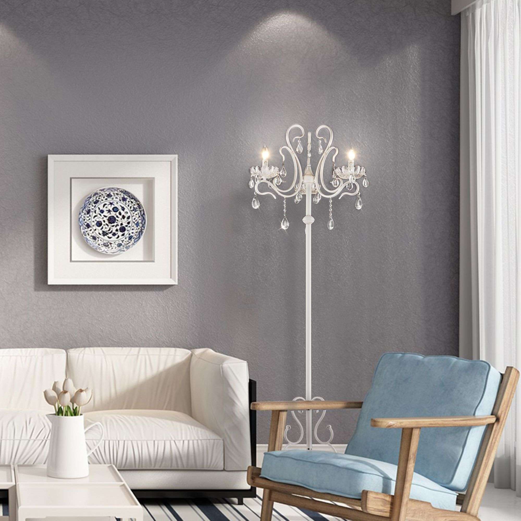 Торшер с хрусталем белый 12205/3F белый - это стильный элемент светового дизайна в современных и классических интерьерах. Выразительный и современный торшер со сменными лампами E14 поможет создать качественное дополнительное освещение на площади 10 м² и станет изящным украшением вашей комнаты.