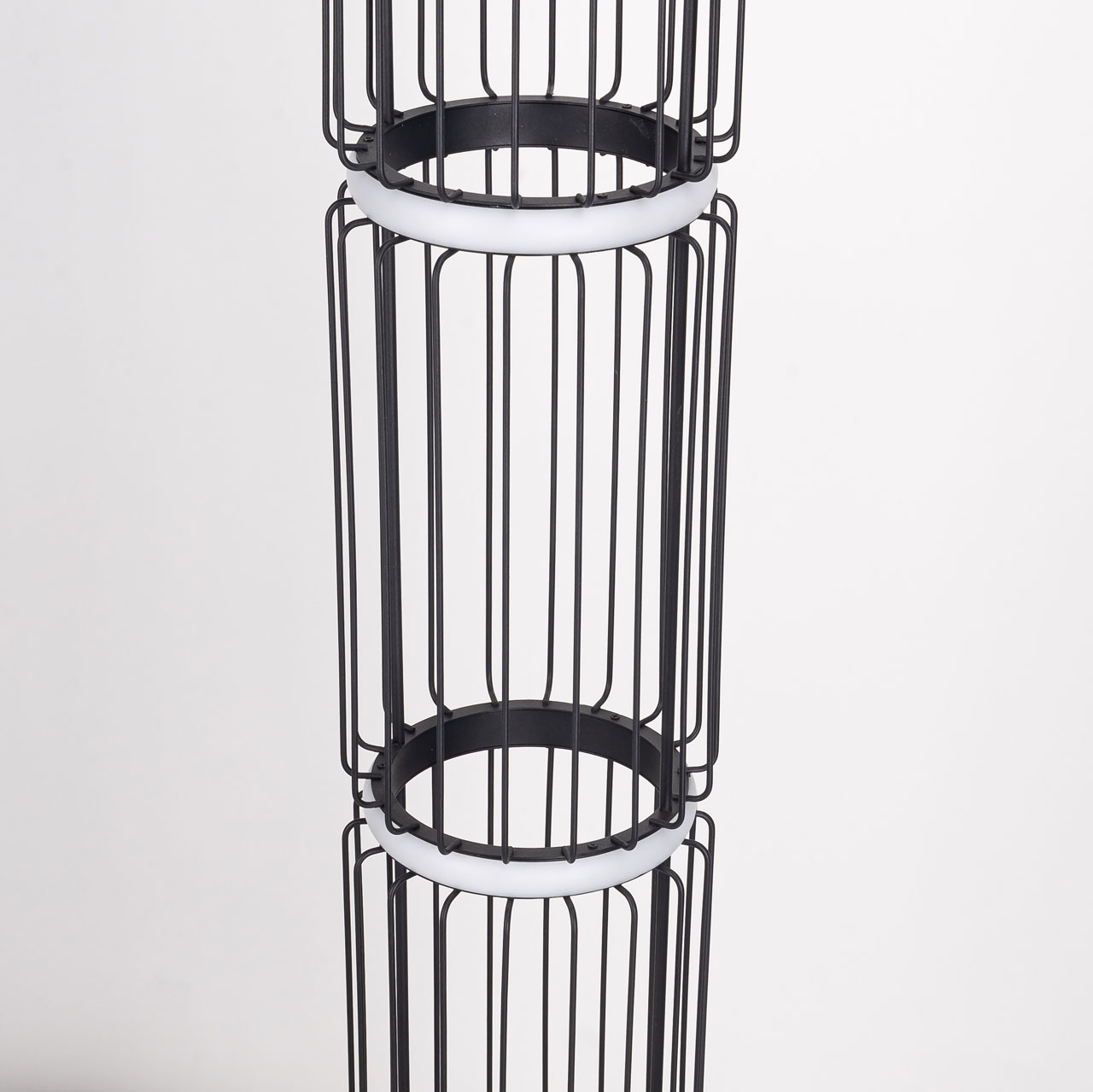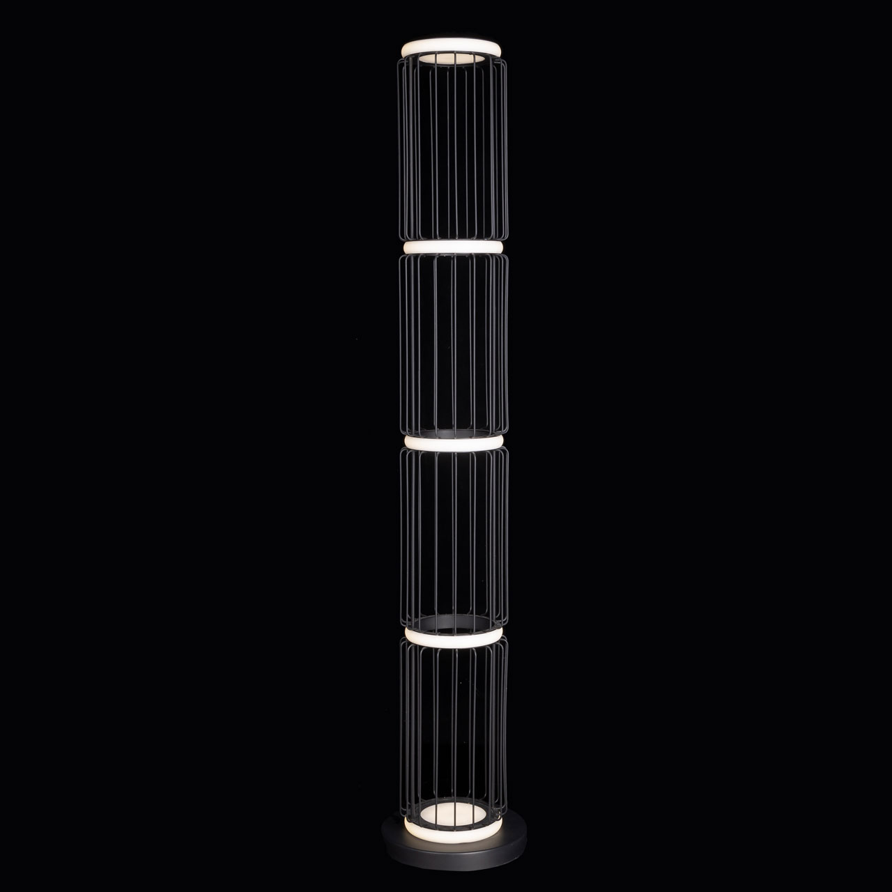 Креативный торшер De Markt Айсфельд 655041101 добавит нотку современного шика интерьеру в стиле минимализм, хай-тек, контемпорари, лофт и т.д. Модель отличается эффектным и оригинальным внешним видом: состоит из 4 воздушных секций, сделанных из тонких черных прутьев, напоминающих маленькие клетки. Между ними расположены встроенные светодиодные источники света, закрытые белыми прозрачными рассеивателями, которые делают освещение мягким, нерезким и уютным.