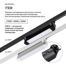 Трековый светильник однофазный трехжильный с переключателем температуры Novotech ITER 359797 белый