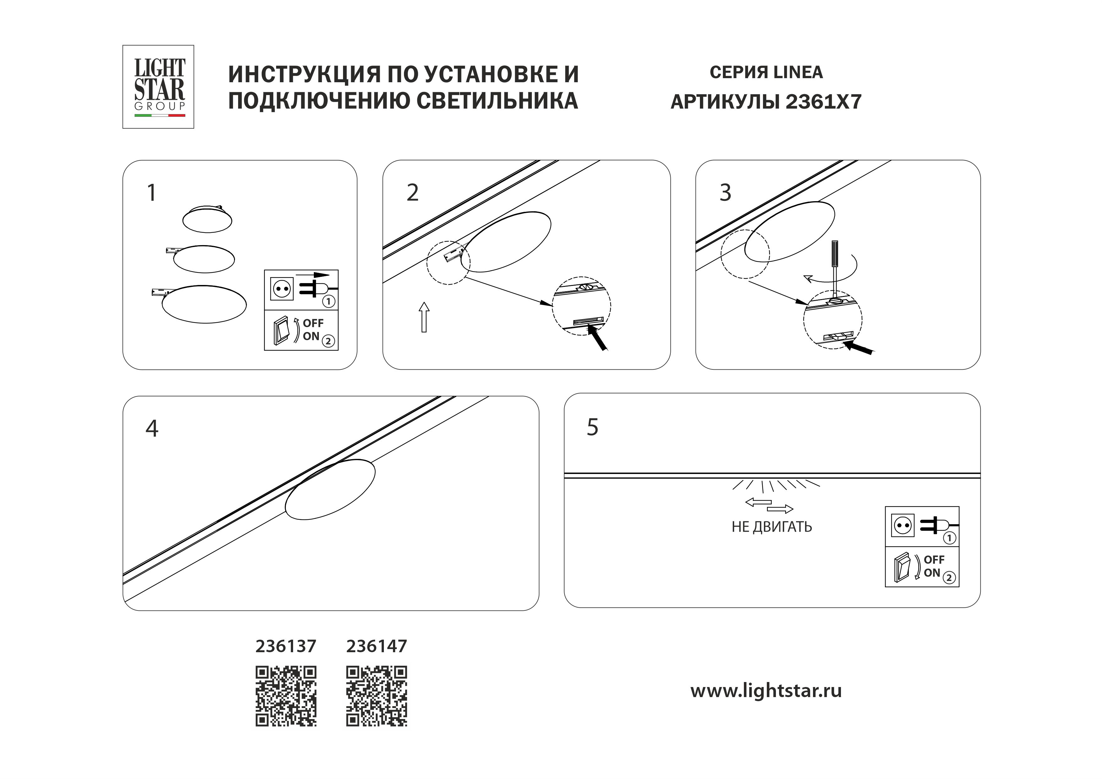 Трековый однофазный светильник 24V 5W 200° 3000K Lightstar Linea 236137 в г. Артеме