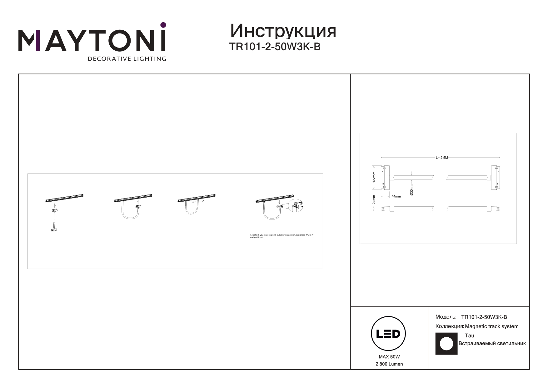 Данную модель TR101-2-50W3K-B с быстрой доставкой спешите купить по цене 16 990 ₽ в магазине 220svet.ru