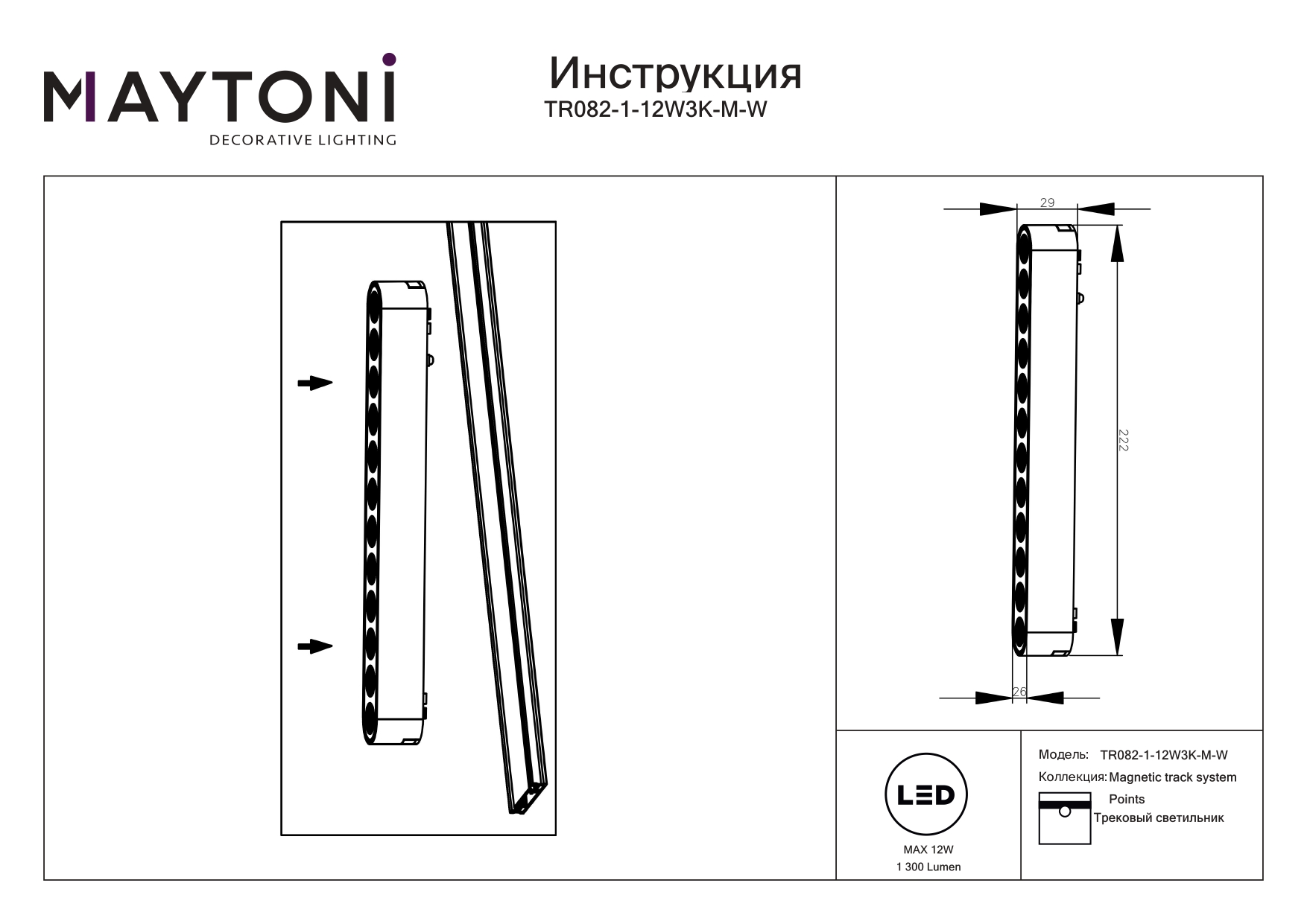 - Общая мощность: 12 W