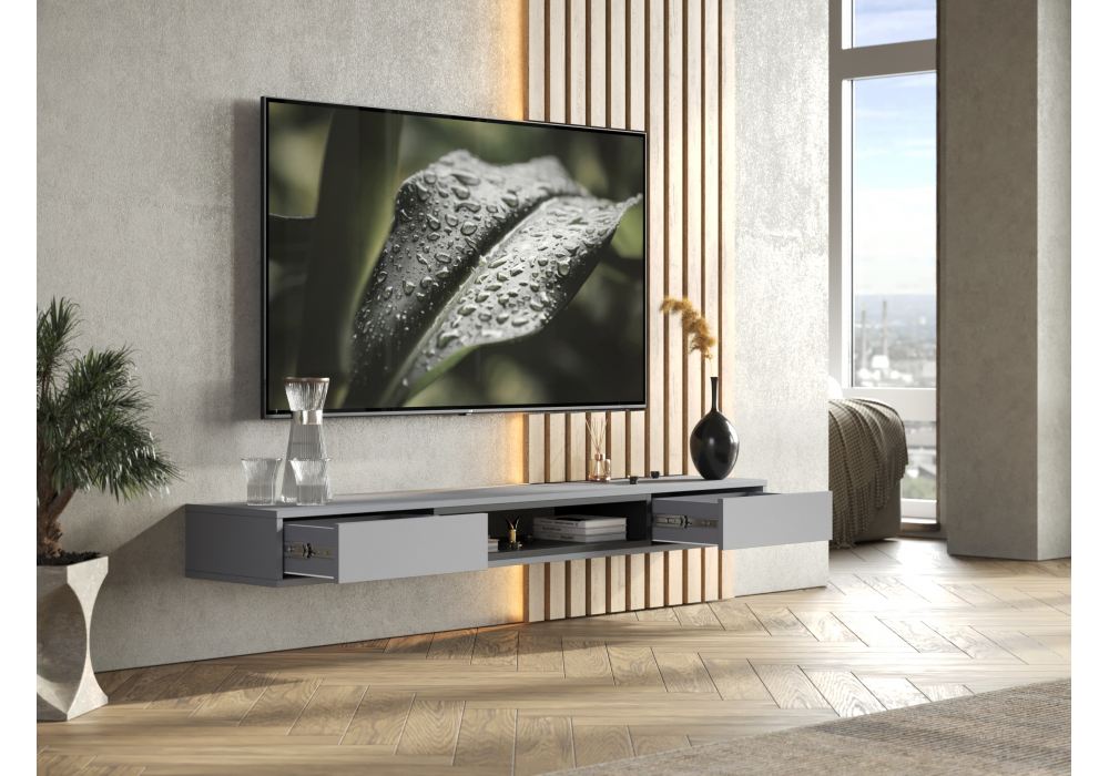 Купить "ТВ-тумба Woodville Делора 1,6м шиншилла серая / черный 674715"