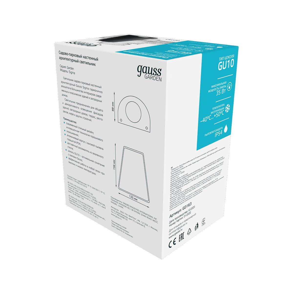 Уличный настенный светильник Gauss Sigma GD163 в г. Артеме
