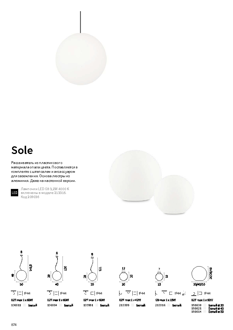 - Цвет плафонов: Белый