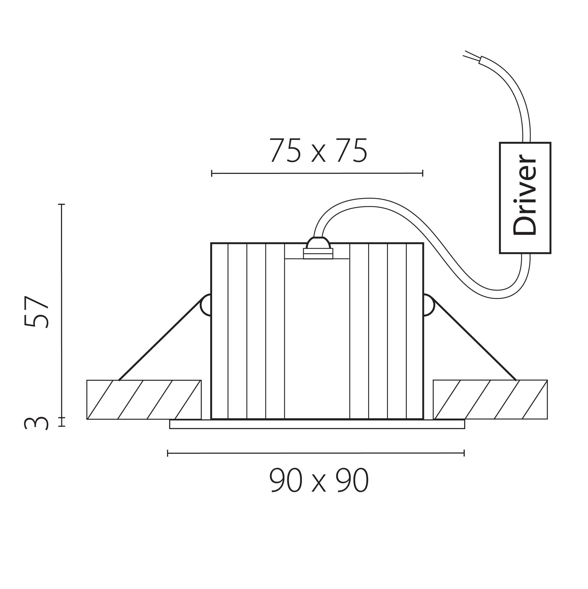 - Диаметр врезного отверстия: 75 мм (7.5 см)