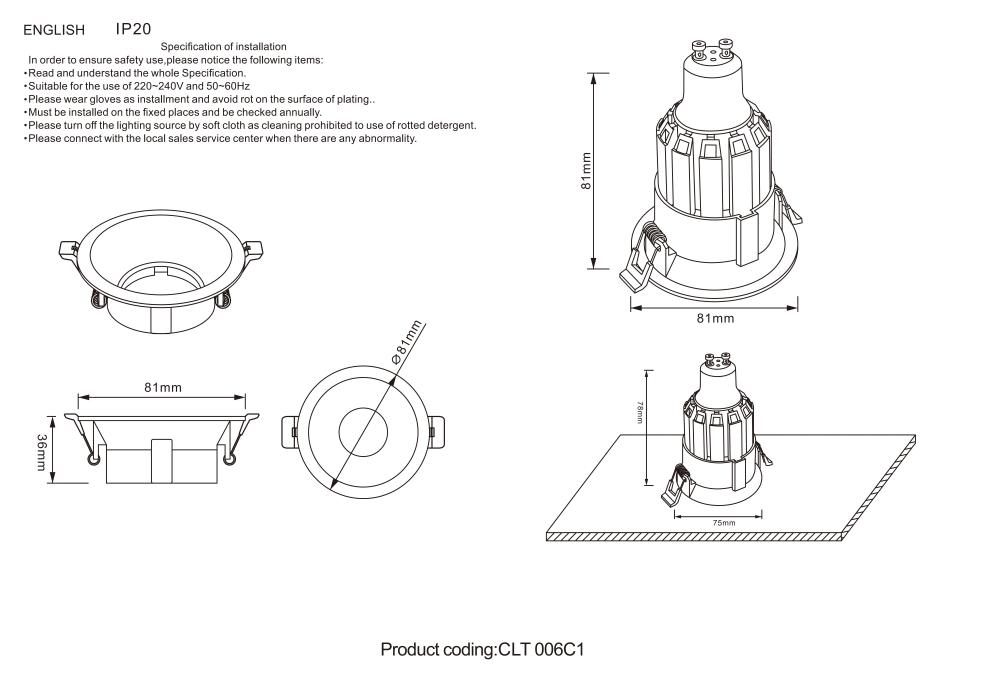 - Высота встраиваемой части: 81 мм (8.1 см)