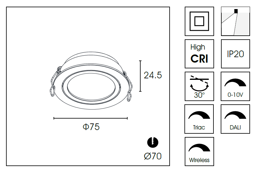 Купить "Встраиваемый светильник DA8303DR Ø7.5 Delight Collection"