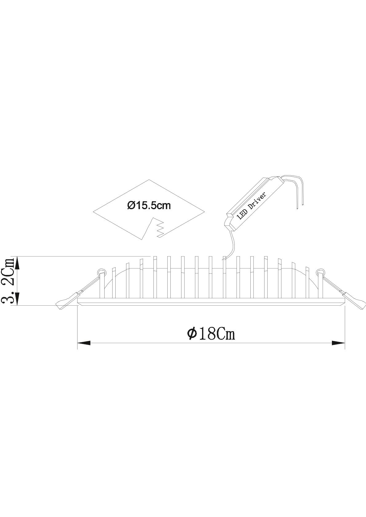 - Диаметр врезного отверстия: 150 мм (15 см)