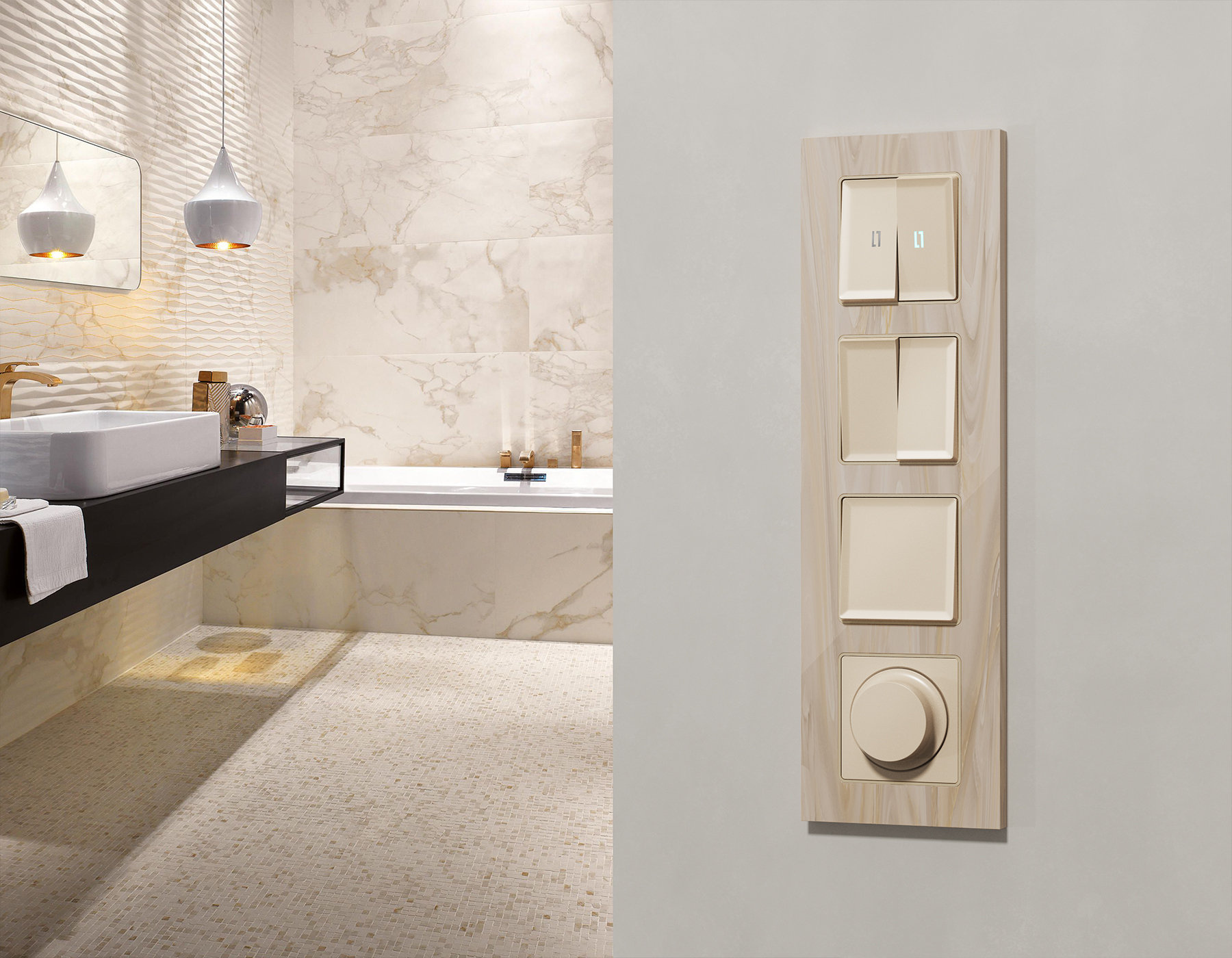 Многогранный ассортимент Ambrella Volt включает в себя механизмы, лицевые панели и рамки, а также комплекты, доступные в различных цветовых решениях. Продукция представлена в модульном исполнении, что позволяет гибко настраивать внешний вид и функциональность. Вам будет легко заменить лицевую панель, рамку или механизм, найдя идеальное сочетание цветов.